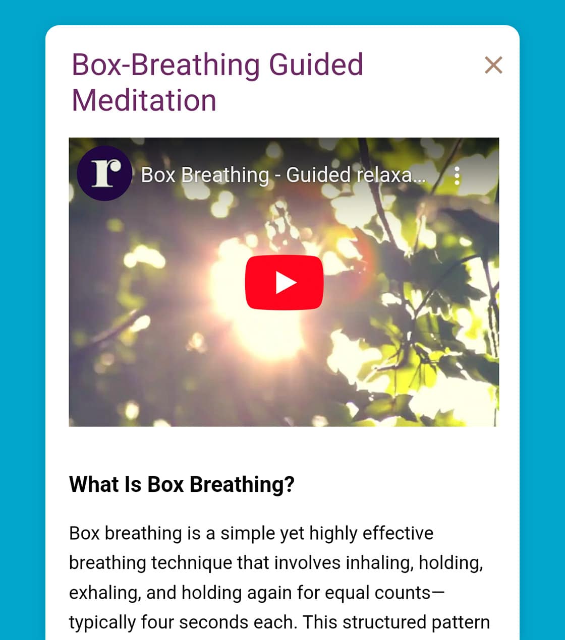 Listen anytime through the Reflective app to integrate box breathing into your daily routine for improved relaxation and emotional control.