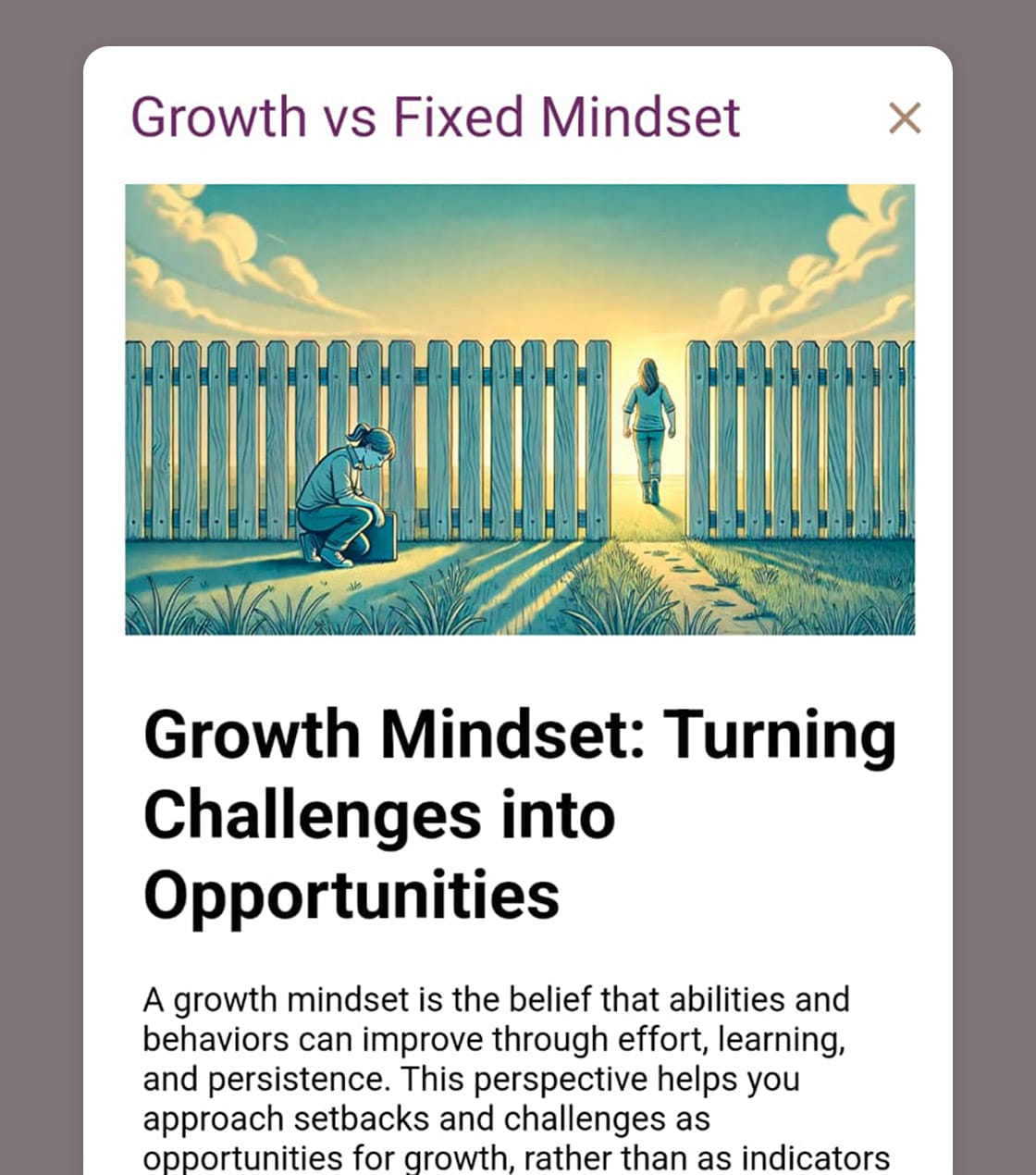 Share the Growth vs Fixed Mindset infosheet with your patient