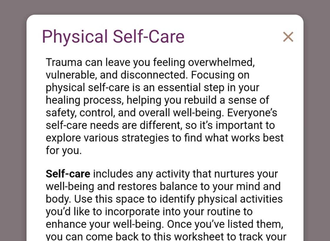 Table of Contents Behavioral Activation and Physical Self-Care Introduction Behavioral Activation (BA) is a powerful therapeutic intervention that helps clients overcome emotional stagnation by encouraging meaningful activity. While BA is widely recognized for its efficacy in treating depression, its principles extend far beyond this application. One often overlooked but vital aspect is the integration of
